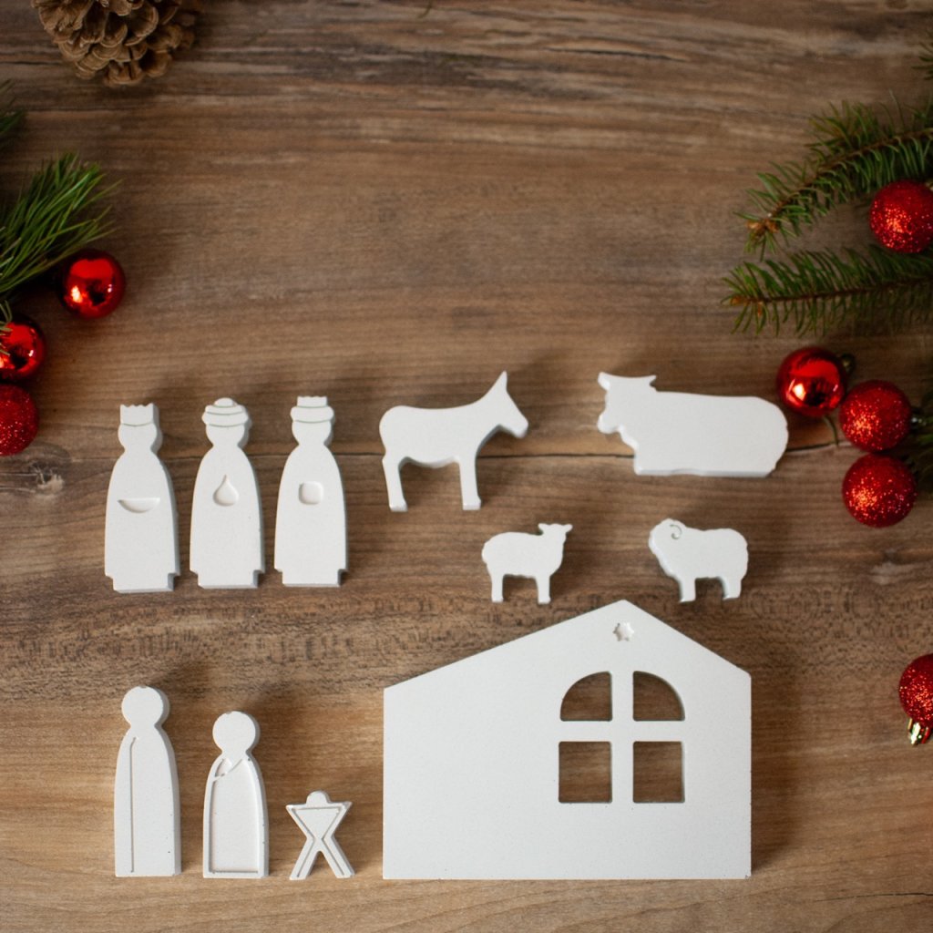 Elegantní betlém v moderním skandinávském stylu vyrobený z betonu přinese do vašeho domova jedinečnou vánoční atmosféru. Čisté linie a jednoduchý design perfektně zapadnou do současného interiéru.