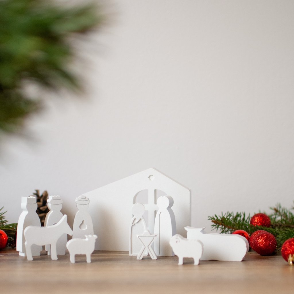 Tip na dekoraci: Betlém vynikne na dřevěném podkladu v kombinaci s přírodními dekoracemi jako jsou šišky, větvičky nebo vánoční ozdoby.