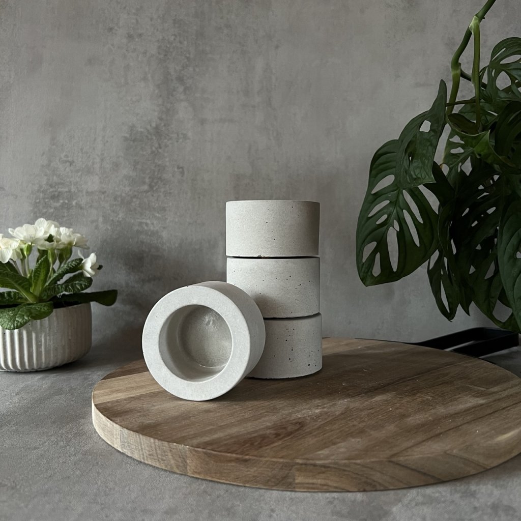 Šedý malý betonový květináč ve tvaru válce je multifunkčním prvkem pro váš domov. Jeho kompaktní velikost a elegantní design umožňují využití pro malé rostlinky či sukulenty, čímž přináší do vašeho interiéru přírodní kouzlo. Tento květináč může také sloužit jako svícen pro čajovou svíčku, přidávající do vašeho prostoru útulnou atmosféru. Jeho univerzální využití a jednoduchý, moderní vzhled ho činí skvělým doplňkem do každého interiéru.